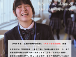 はじめてのコト、楽しいコト、苦手なコト 高校生活3年間で全部やってみよう! 大阪高等学校ははじめの一歩を踏み出すキミを応援します。 成功も、失敗も、仲間とともに経験することで、楽しい自分に出会えます。