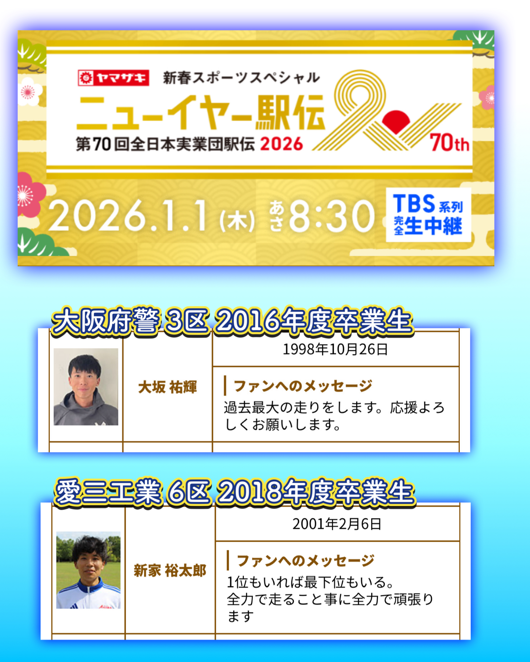 陸上部長距離の卒業生が活躍する姿を見せてくれました。