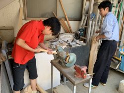 購入した木の棒をカットし、ヤスリで削っていくという作業です。