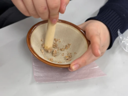 今年度も龍谷大学農学部にアグリカフェを実施していただきました。今回のテーマは「コムギ」で、龍谷大学農学部の三浦先生に講座を行っていただきました。講座のなかでは「コムギ」のルーツから学習し、普段使われいるコムギ料理を確認しました。「コムギ」に関して学習した後は、実際のコムギを触り、コムギの種によって潰しやすさが異なることを確認し、軟質と硬質のコムギについて学習しました。実際のコムギに触れることで普段食べている「パン」「ラーメン」「ケーキ」などの原材料への理解が深まり、食への理解が深まりました。今後、食べるときに今回の実習を思い出しながら食事を楽しんでほしいと願っています。