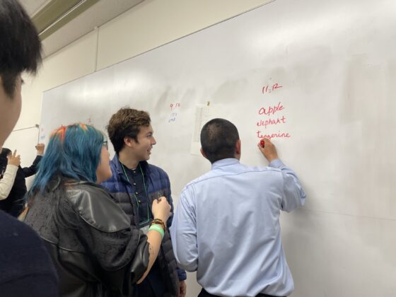 限られた時間の中で、生徒たちは「たくさん話し、たくさん聞く」ことに挑戦しました。英語と日本語を組み合わせたしりとり、少人数でのディスカッション、連想ゲーム、そして留学生とともに校内を巡る散策活動など、多様なプログラムを展開。