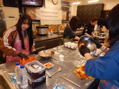K-POPダンス体験、韓服体験、キムチ作り体験に分かれて、それぞれの生徒が全身全霊で韓国文化を味わっていました。