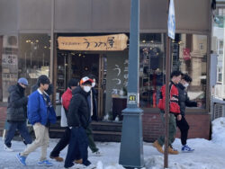 運河で集合写真を撮ったあとは、各々が自分たちで立てたプランで小樽を満喫しました。この4日間でいちばん寒い日となっていましたが、それに負けないぐらい楽しんでくれていました。