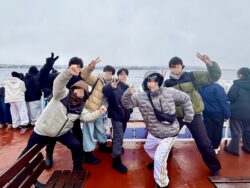 流氷観光砕氷船おーろら号に乗船する頃には天気も回復し、甲板に出て景色を楽しむ生徒や波打つ様子を船内から観察する生徒など、一時間の船旅を各々のスタイルで過ごしていました。