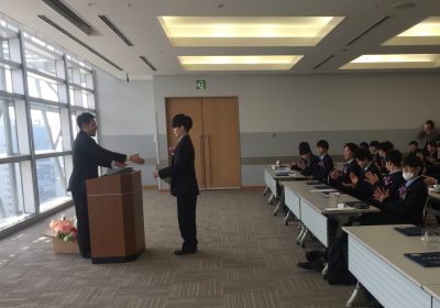 続いて三ヶ年皆勤者、三ヶ年精勤者、今年度皆勤者の表彰授与が行われました。そして、大阪府知事賞や大阪高校特別賞などの各賞では緊張した様子で表彰状を受け取りました。