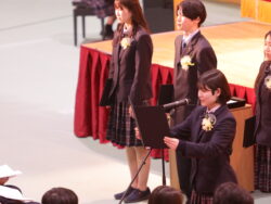 続いて、在校生代表として生徒会長の 南井 真帆さん<大阪市立天王寺中学校出身>が送辞を読んでくれました。