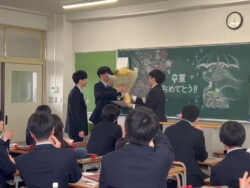 各クラスの代表生徒が、在校生から感謝の言葉とともに、花束を受け取りました。