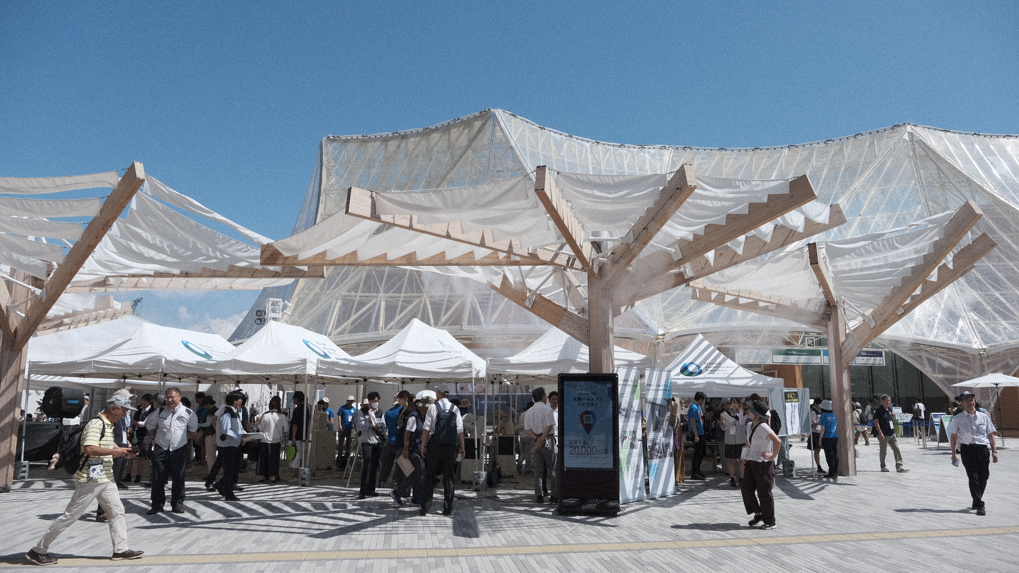 今回の発表会場は東ゲートをくぐってすぐ、大阪ヘルスケア館前ステージでした。