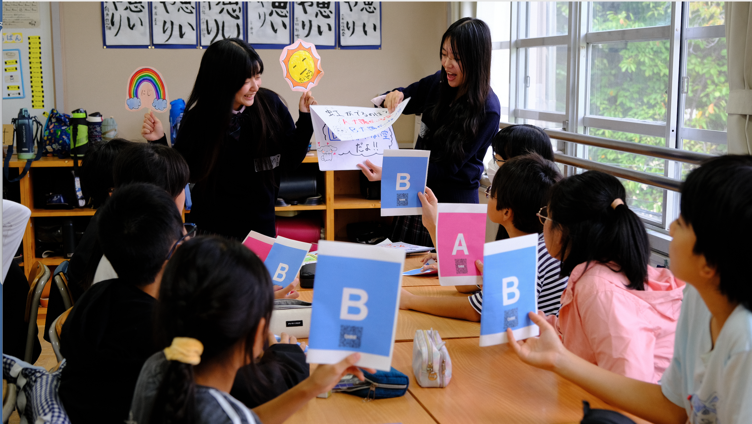 授業前に緊張した姿を見せていた生徒たちも小学生の顔を見ると自然と笑顔に変わり、教室に入ってからは楽しそうにコミュニケーションをとる様子が見られた。