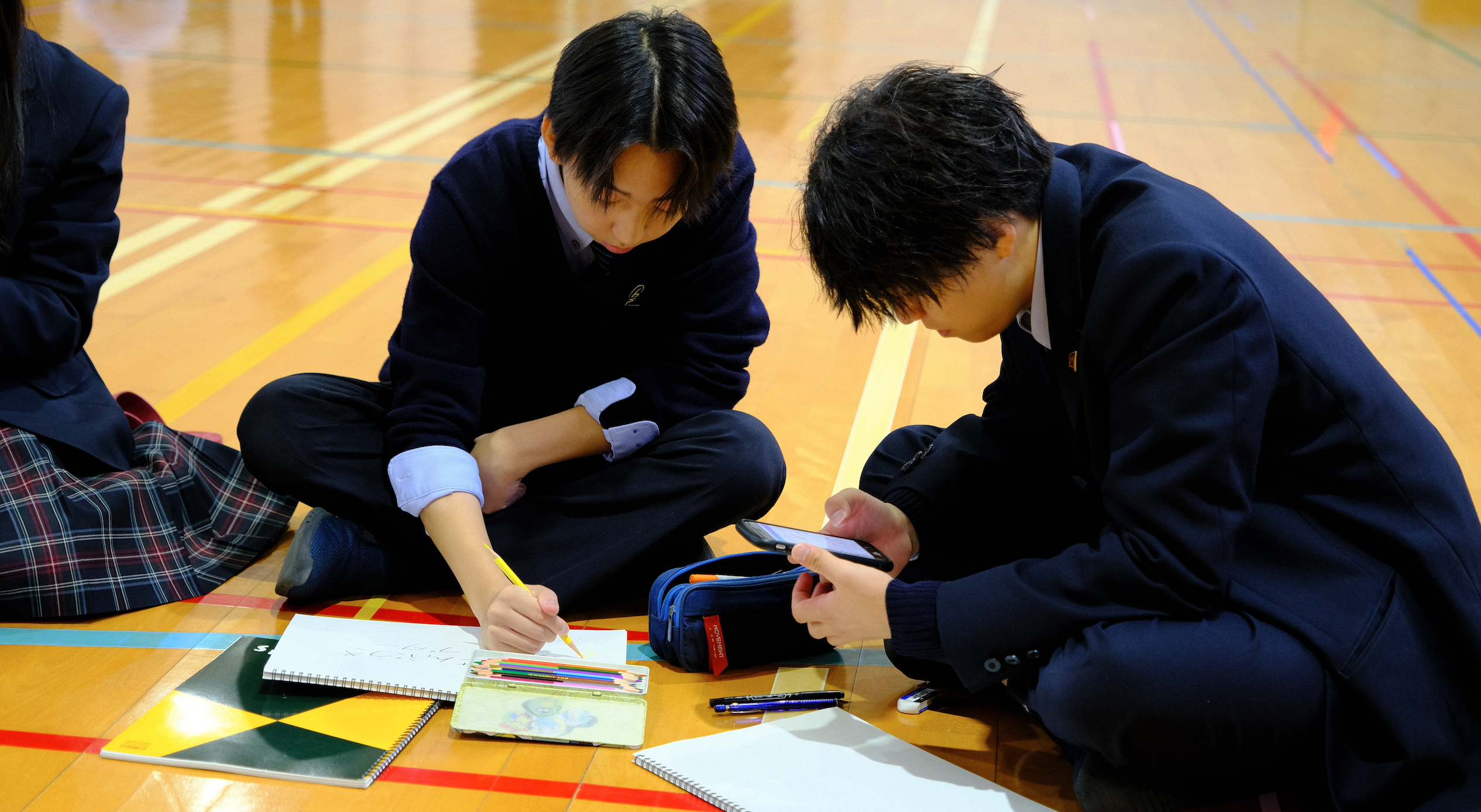 その後、「近くにいる高校生のみんなと一緒に学んでね!」