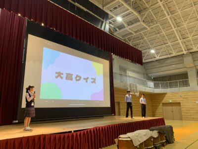 全体説明会の開始前【13:45~13:55】の10分間に在校生企画「大高クイズ」があります。OS委員の生徒が大阪高校に関わるクイズを考え、スライドを作成し、何度も練習をしてお届けします。ぜひ13:45までにご来校ください。